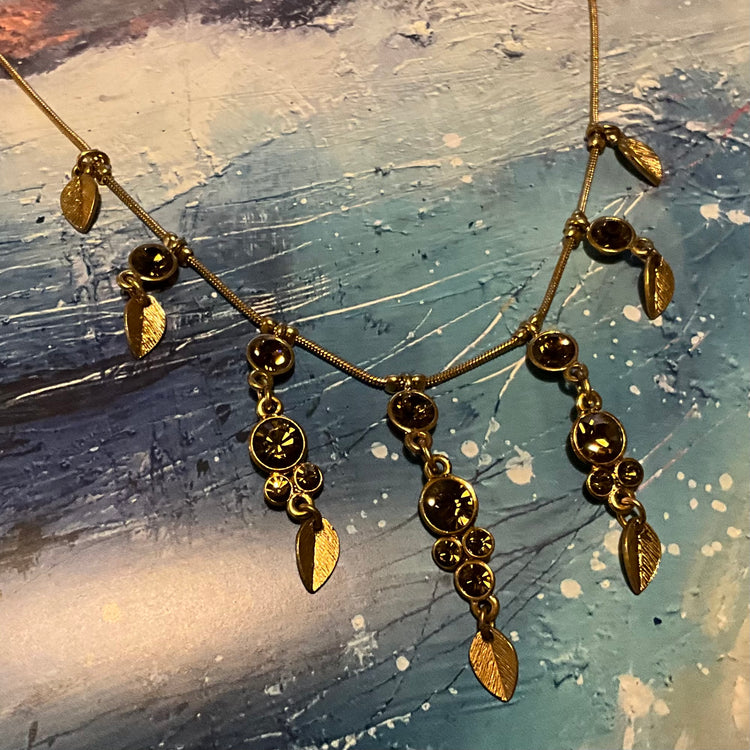 Stunning crystal drop necklace from the little leaves collection in Brown/Gold 45mm drop adjustable 380-445mm