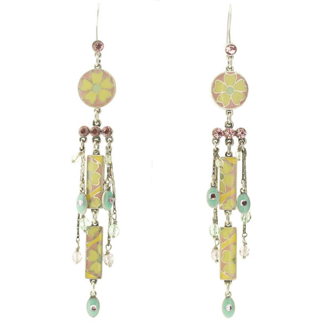 Very long Medici Collection Earrings in pastel/silver 112mm drop, top disc measures 14mm diameter