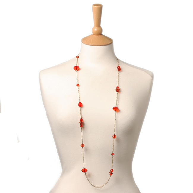 Mosaic Long Necklace in gold, Orange/Gold, wear long or doubled up. (Adjustable 109-117cm)