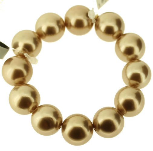 Glass Pearl Elasticated Bracelet. Glass Pearls Measure 17mm. Brown/Gold