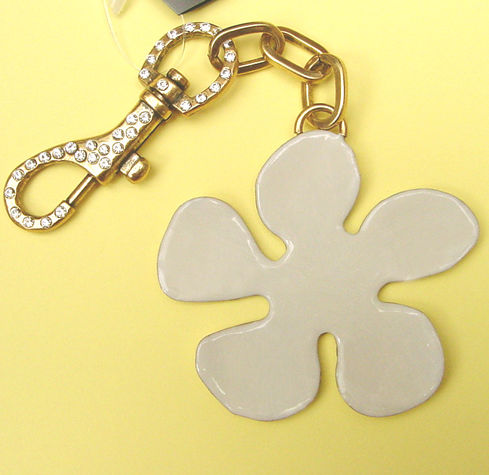 White/Gold Pressed flower, looks gorgeous hanging from a belt loop or handbag large flower 70mm accross, 25 Swarovski Crystals on hook