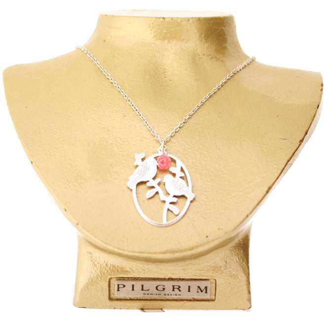 Lovely necklace; Chain 460-340mm, oval pendant with birds measures 41mm in length. Multi/silver colourway