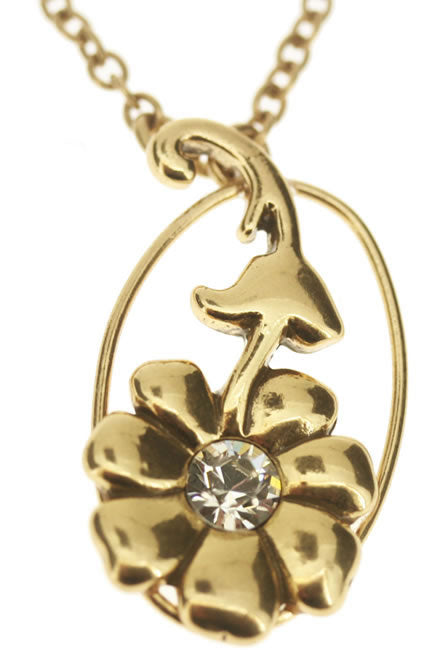 Long necklace featuring a flower in an oval hoop from the Rambling Nature collection. 35mm drop at the center. Crystal/Gold colourway. Adjustable chain 690-770mm (27.25 - 30.25 inches)