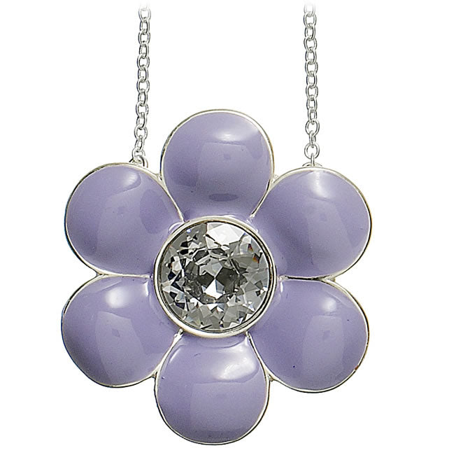 Flower pendant with a large Swarovski crystal at it's center, Flower measures 45mm across, adjustable 380-460mm. Pastel/Silver colourway
