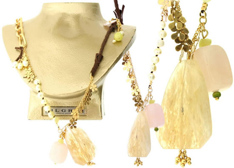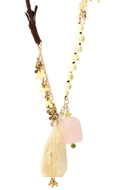 Most elaborate long necklace from the Touch of nature collection. Adjustable 430-640 mm, large stone measures 40x30mm. Pastel/Gold