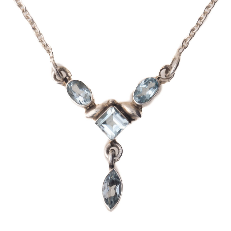 Silver Necklace with Semi Precious Blue Topaz