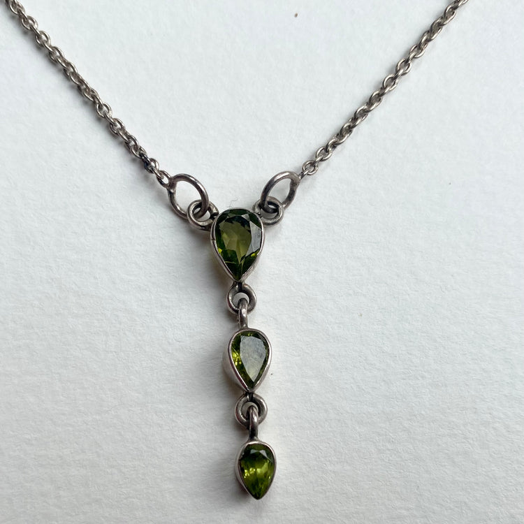 Silver necklace with Peridot, length 395mm drop 35mm, weight 5 grammes