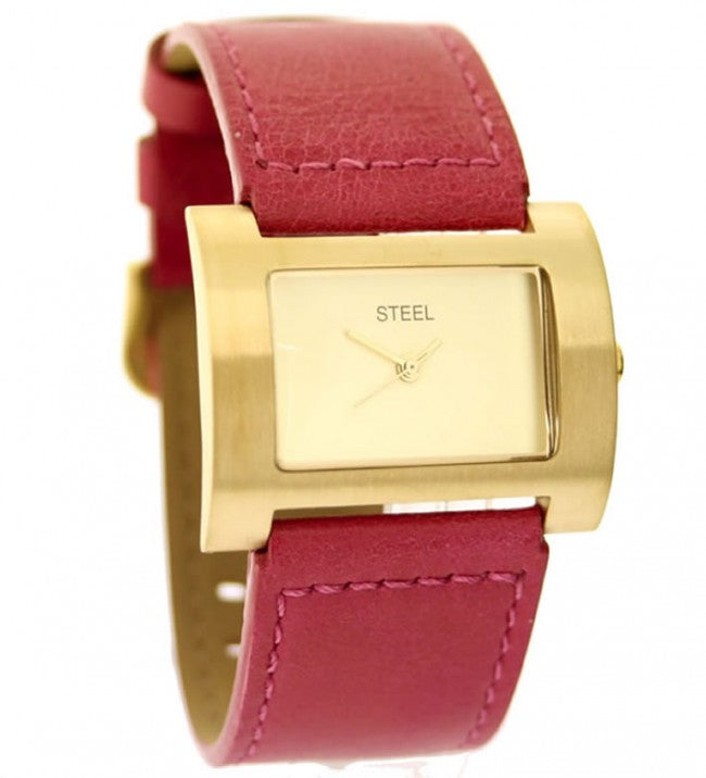 Watch from the Rolo collection in Deep Pink/Gold Movement measures 35x 32mm Adjustable 27mm wide strap 140 -190mm Rolo Gold Collection from Steel A smart watch with an uncluttered minimilistic face. Japanese movement and stainless steel back.