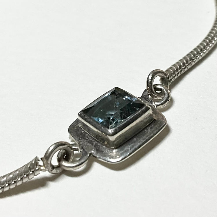 Silver Bracelet with a square Blue Topaz inset 175mm length