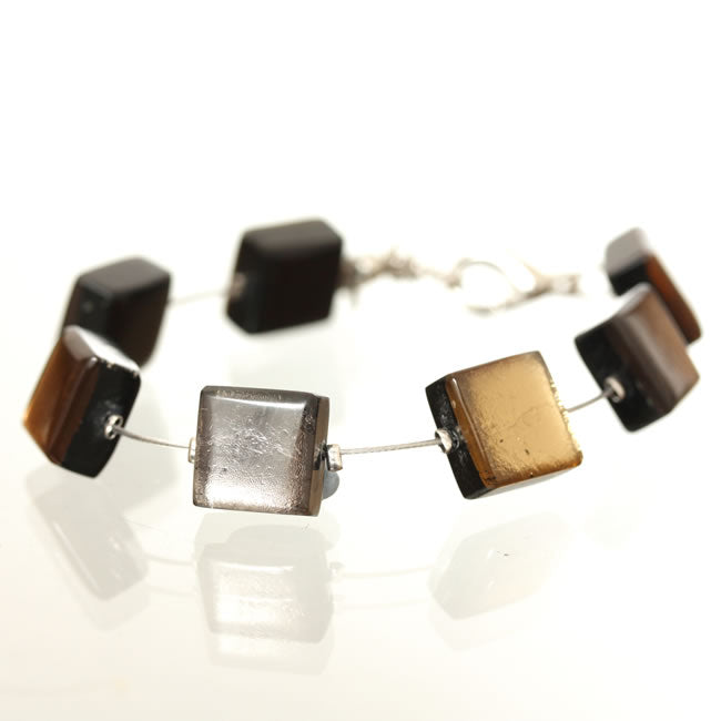 Bracelet from the Square Buttons Collection, each square measures 11 x 11mm (0.4 x 0.4 inch). Adjustable length, Metalics/Silver colourway