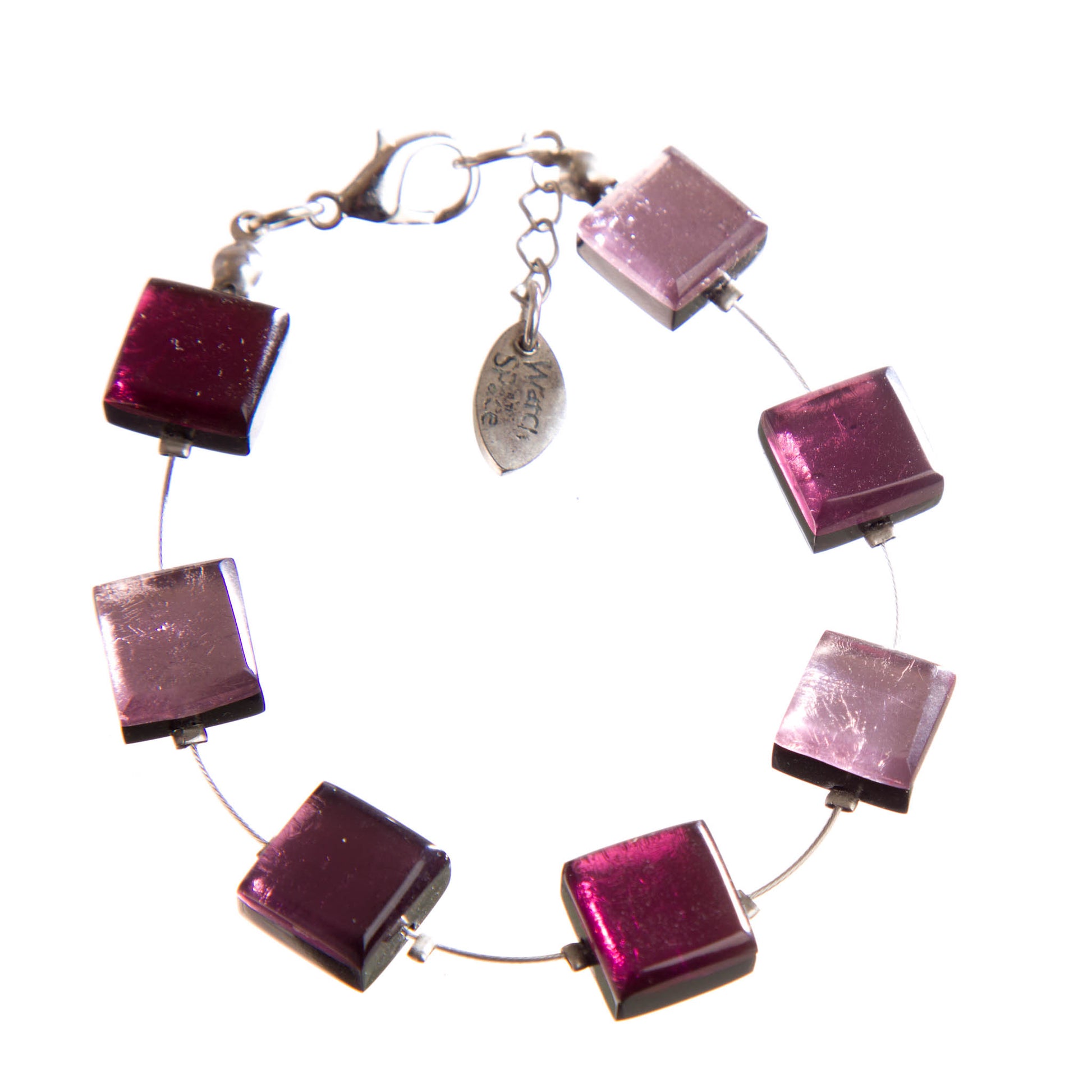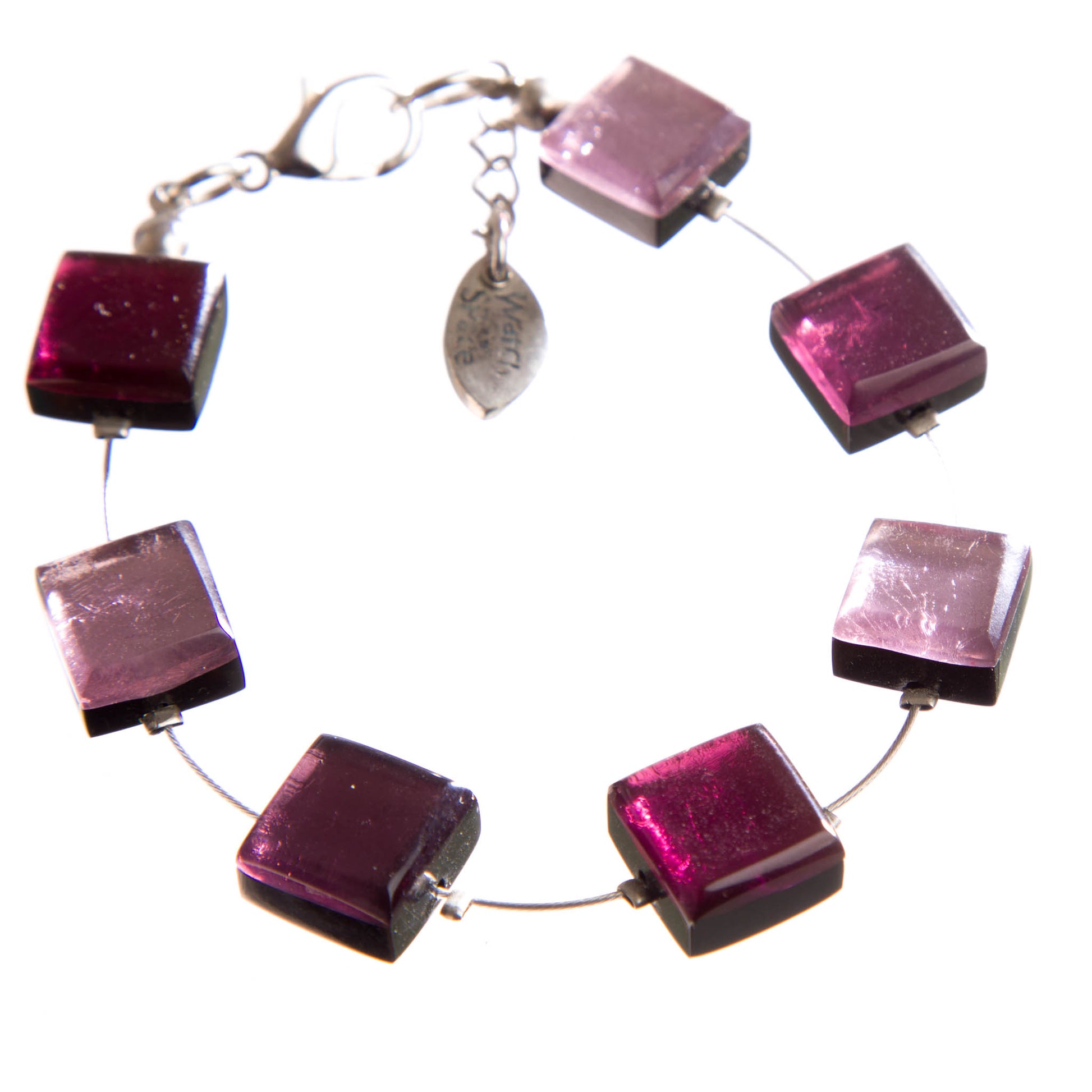 Bracelet from the Square Buttons Collection, each square measures 11 x 11mm (0.4 x 0.4 inch). Adjustable length, Pink/Silver colourway