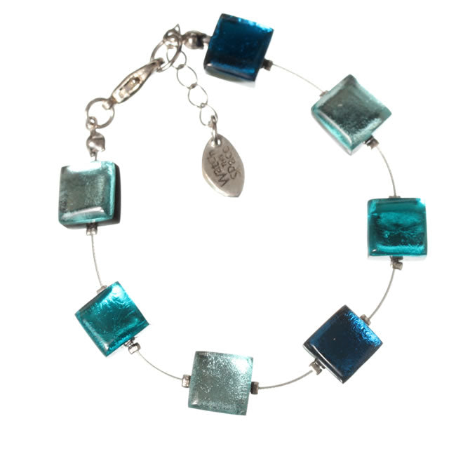 Bracelet from the Square Buttons Collection, each square measures 11 x 11mm (0.4 x 0.4 inch). Adjustable length, Teal/Silver colourway