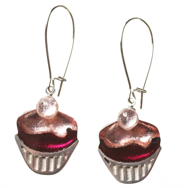 Earrings from the Cupcake Collection, 48mm (2 inch) total drop. Rose/Silver colourway. Hypo-allergenic Ear Wires.