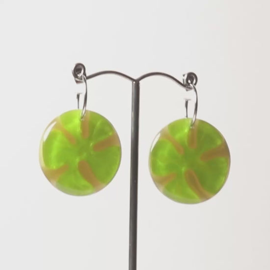 Watch This Space – Circular Resin Statement Earrings, Lime & Silver (25 × 25 mm)