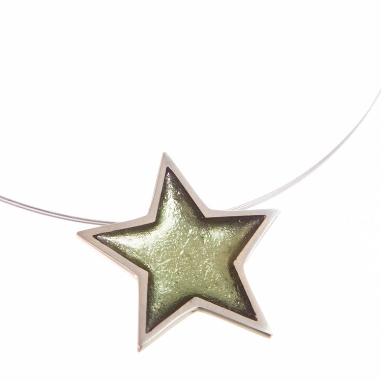 Watch this Space Pendant Necklace from the Pewter Stars Collection, Olive