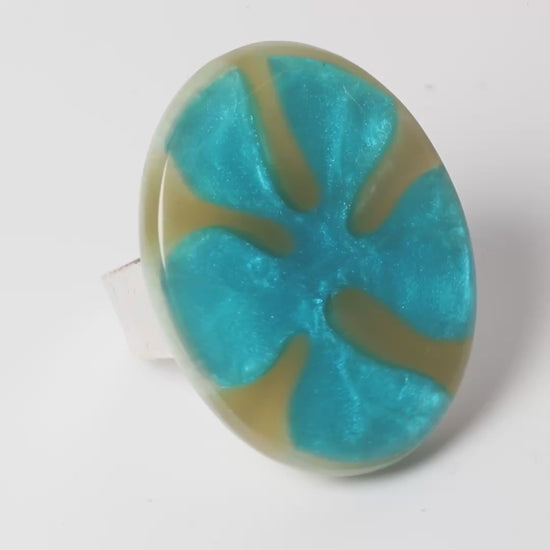 Watch This Space – Oval Resin Statement Ring, Teal & Silver (35 × 25 mm)